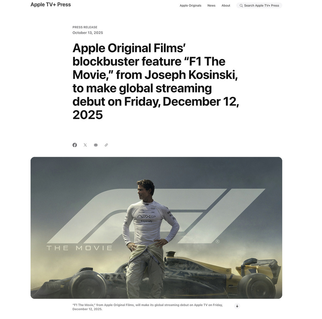 另一消息指,Apple 正積極與 FIA 洽談有關 F1 大賽車的直播權,有機會在 2026 年賽季開始,作為 Apple TV 串流的其中一項重要內容。下星期將會是 F1 美國站賽期,屆時有機會有好消息公布。