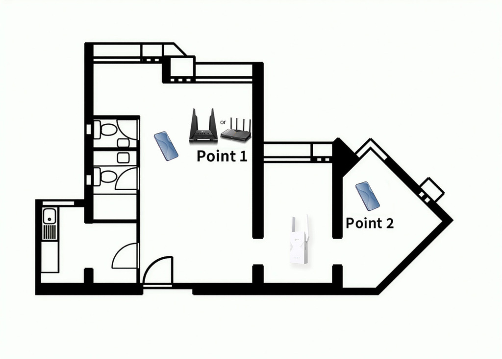 這是香港最常見的戶型,通常伴隨著「鑽石廳」或長走廊設計,Wi-Fi 難以轉彎入房,尾房訊號極弱。針對這種情況,Archer GE230(主)+ RE235BE(副)是一個極具成本效益的「黃金組合」。