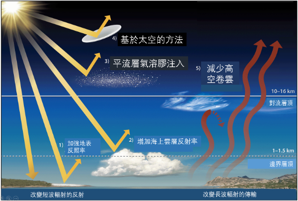 圖 4:以改變太陽輻射的反射和傳輸,從而干預地球氣候的地球工程。(來源:美國國家海洋和大氣管理局)