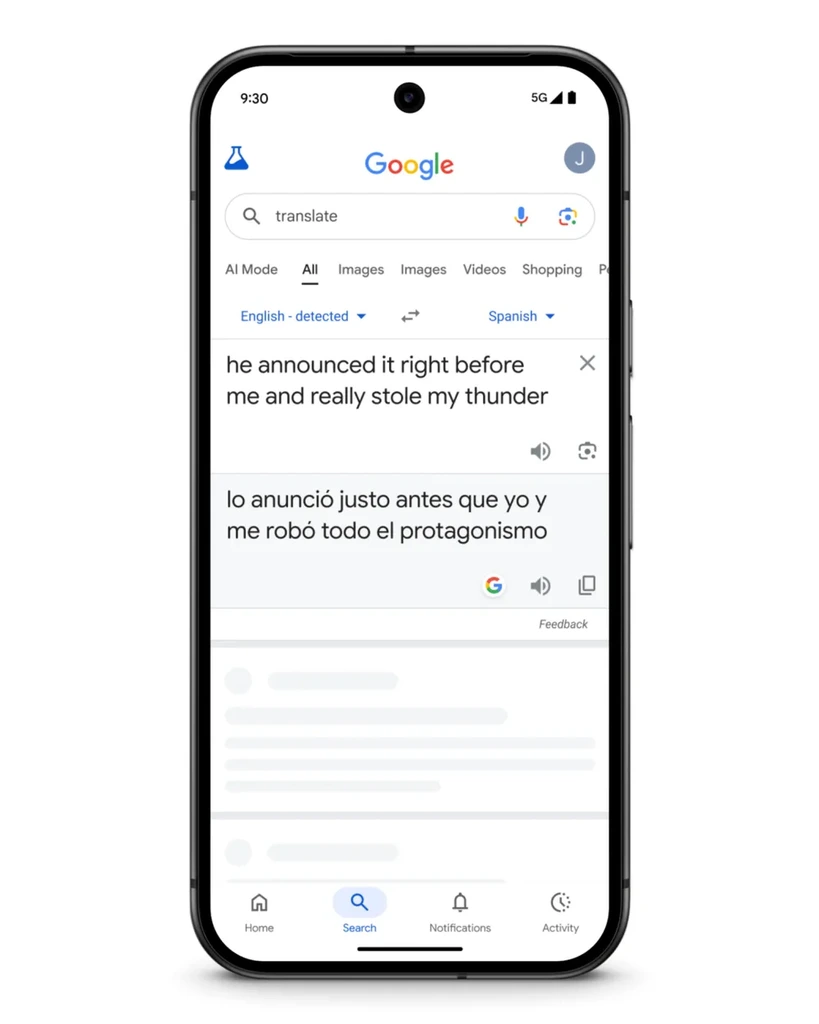 近日 Google 於官方部落格中宣佈,在 Google 搜尋與 Google 翻譯 App 中,正式導入由 Gemini 打造的最新文字翻譯技術,讓翻譯結果變得更加聰明、自然且精準。相比目前的 Google 翻譯,改用 Gemini 技術後,系統能更精準處理一些例如慣用語甚至俚語等等。翻譯效果會更貼近原意的翻譯,而不只單純的逐字直譯。
