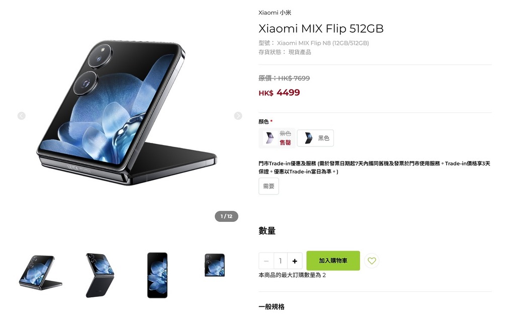 近日有大舖網店推出優惠,Xiaomi MIX Flip 12GB + 512GB 版本從原價 $7,699 大幅降至 $4,499。